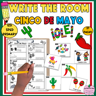 Cinco de Mayo Write the Room is an interactive vocabulary game designed for ESL newcomers, SPED, and primary students. It includes 24 themed vocabulary cards (with and without labels) and a variety of differentiated recording sheets for tracing, writing, and matching. Students move around the classroom to find and record vocabulary, making learning active and engaging. The visuals and varied supports help build language skills, support cultural learning, and meet the needs of diverse learners. This resource is perfect for building vocabulary, encouraging movement, and celebrating Cinco de Mayo in a fun, meaningful way.